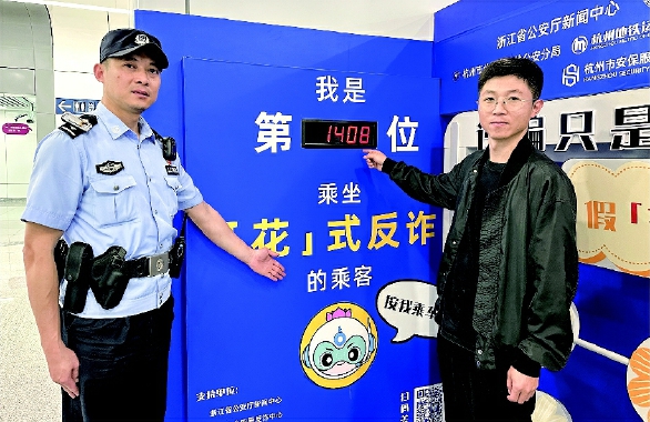 当天,杭州市公安局地铁公安分局联合浙江省公安厅新闻中心、杭州地铁运营有限公司、杭州市安保集团共同启动以“守护杭铁 聚力反诈 警企同行”为主题的反诈联建系列活动,正式启用3号线新天地街站作为杭州地铁首个反诈示范站,推出“花式反诈列车,花里有话”主题活动,让每一位乘客在乘坐地铁时能感受到浓厚的反诈氛围。