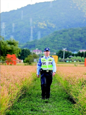 10月23日,舟山市公安局普陀区分局展茅派出所组织民警深入田间地头开展治安巡逻、安全宣传、纠纷调解等“田间警务”,助力农民增收。通讯员 邵宇翔 摄