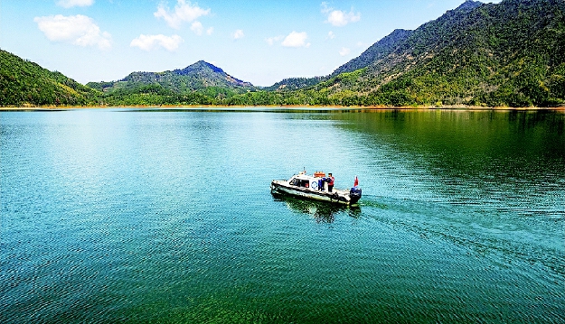 在金华市婺城区南山省级自然保护区沙贩水库,青山碧水与蓝天白云相映成辉。金华市公安局婺城分局琅琊派出所坚持“每周一主题”巡山护水,全力守护金华“大水缸”“后花园”。 通讯员 吴辰 摄