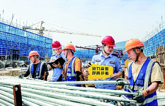六月三日,浦江县公安局开展“助力高考?静音护航”主题宣传活动,民警向工地负责人和工人宣传高考期间“静音禁噪”的目的和意义,教育引导他们自觉遵守“静音倡议”。