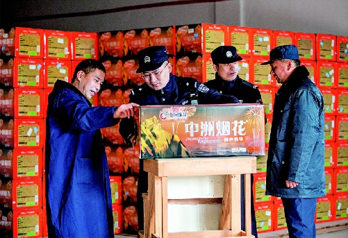 一月八日,台州市公安局黄岩分局北洋派出所民警来到辖区的烟花爆竹储存仓库,对安全责任制度落实情况、消防设施设备配备情况等开展安全检查,确保不出安全事故。