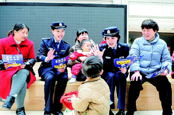 3月5日,东阳市公安局白云派出所反诈专管女警带着展板和宣传资料来到企业车间、商场等地,向群众开展反诈知识宣传,守护大家的“钱袋子”。 通讯员 蔡伟华 摄
