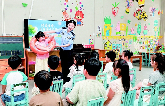 连日来,三门县公安局珠岙派出所组织民警深入辖区暑假托管班开展防溺水宣传,全力守护孩子们的生命安全。