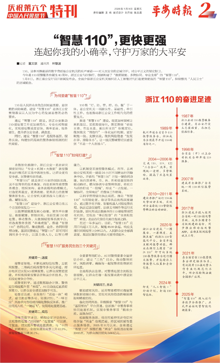通过“智慧110”建设,浙江公安推动110接处警工作更加规范化、专业化和智能化,实现接处警速度更快、效率更高、服务更优,提升群众安全感、满意度。