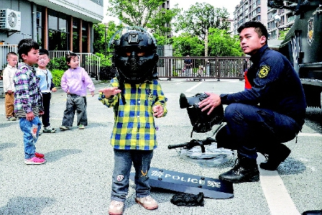 5月13日,宁波市公安局海曙分局巡(特)警大队警务实战技能送教团队走进石碶街道江上幼儿园开展“特警进校园,共建保平安”活动,通过开展校园安全知识教学,增强师生们的安全意识,护航学生健康快乐成长。 通讯员 周莉 摄