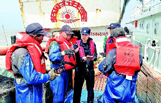 四月十六日,台州市公安局椒江分局港区派出所民警登上渔船,向渔民宣传防范电信网络诈骗知识,发放反诈宣传资料,全方位提升渔民反诈防诈意识。 通讯员 何文斌 摄