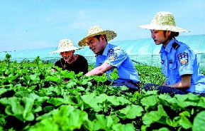 “大叔,您家瓜地周边的‘警告牌’已安装,我们会继续加强视频巡查和日常巡逻,您在生产和生活中遇到什么困难,可以及时和我们联系!”7月24日一早,在丽水莲都碧湖平原果蔬田园,丽水市公安局莲都区分局碧湖派出所所长黄杰正带着所里的“草帽警”开展巡逻走访。