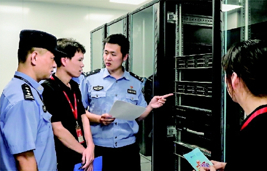 八月二十六日,桐乡市公安局网络安全保卫大队与凤鸣派出所联合对辖区企业开展网络安全检查,排查隐患,提升企业网络风险识别能力和网络安全防范水平。 记者 沈志良 摄