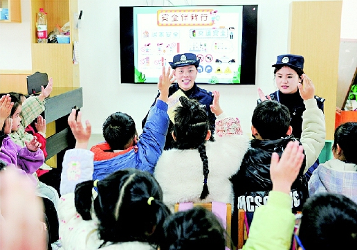 十一月十九日,东阳市公安局白云派出所民警来到辖区幼儿园,以讲故事、抢答问题等形式,向小朋友们开展居家安全、交通安全、防拐骗等知识宣讲,传授防范技巧,全力筑牢安全防线。
