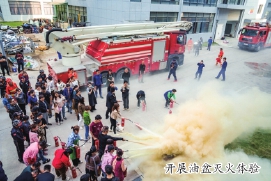 演练结束后,大队火焰蓝志愿服务队联合园区消防安全管理人员,通过开展油盆灭火体验、上门排查火灾隐患、宣讲防火知识等,向员工普及消防安全知识。