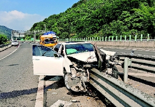 疲劳驾驶是一项严重的违法行为,高速公路上行车,即使一个分神,都会导致事故的发生。近日,G15沈海高速公路往台州方向观美路段,一辆白色轿车就因驾驶员疲劳驾驶导致车辆失控飞驰撞向高速公路分流岛,所幸未造成人员伤亡。