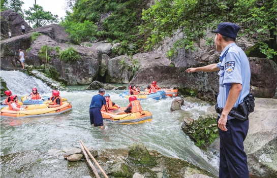 7月23日,武义县公安局王宅派出所民警到辖区漂流点开展安全检查,督促运营单位落实相关安全措施,向游客宣传安全防范知识,提醒漂流时做好自身安全防护,确保安全。 通讯员 徐文荣 摄