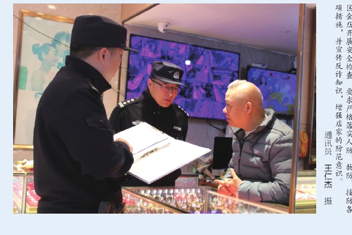 近日,台州市公安局黄岩分局院桥派出所民警深入辖区金店开展安全检查,要求严格落实人防、物防、技防各项措施,并宣传反诈知识,增强店家的防范意识。