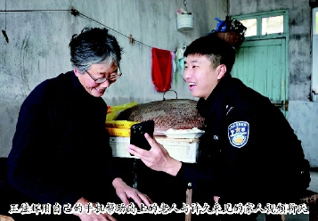 王佳辉用自己的手机帮助岛上的老人与许久未见的家人视频聊天■记者 邹霏霏 通讯员 王浩