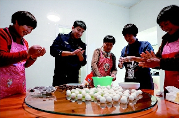 王佳辉(左二)与岛上群众包汤圆