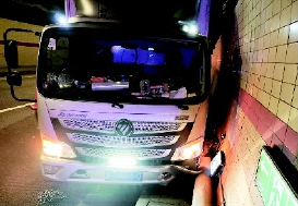民警赶到现场,只见货车左侧与隧道壁紧贴,同时左侧受损严重。为及时消除安全隐患,施救力量立即展开施救,并将事故车辆拖离现场。经过半小时左右的施救,现场交通秩序恢复正常。