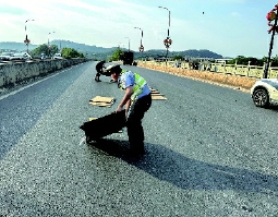 武义县公安局交警大队桐琴中队队员在巡逻中发现这一情况,立即鸣响警笛,提醒过往车辆减速慢行,同时迅速下车协助清理。很快,散落货物被全部转移,路面恢复畅通。
