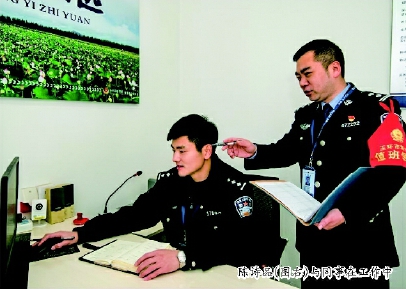 陈诗品(图右)与同事在工作中■记者 邹霏霏