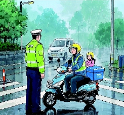 黄昏的高峰岗,仲春的细雨沾湿了执勤服,我拦住试图挤入机动车道的外卖员,发现后座上坐着一个小女孩,清爽的短发背着粉色书包。中年骑手打算张口的辩解卡在喉咙里,因为我正用刚学的方言说:“老哥,咯个本恩囡儿(这个给你女儿),头盔一定戴好!”