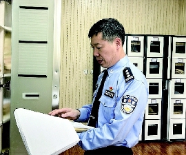 在府山派出所案管室,档案柜里存放着郑小平整理的案件材料。作为专职法制员,他创新建立线上线下双线并管机制,实现案件材料“日清周结月归档”,使派出所全年执法评估稳居分局前列。
